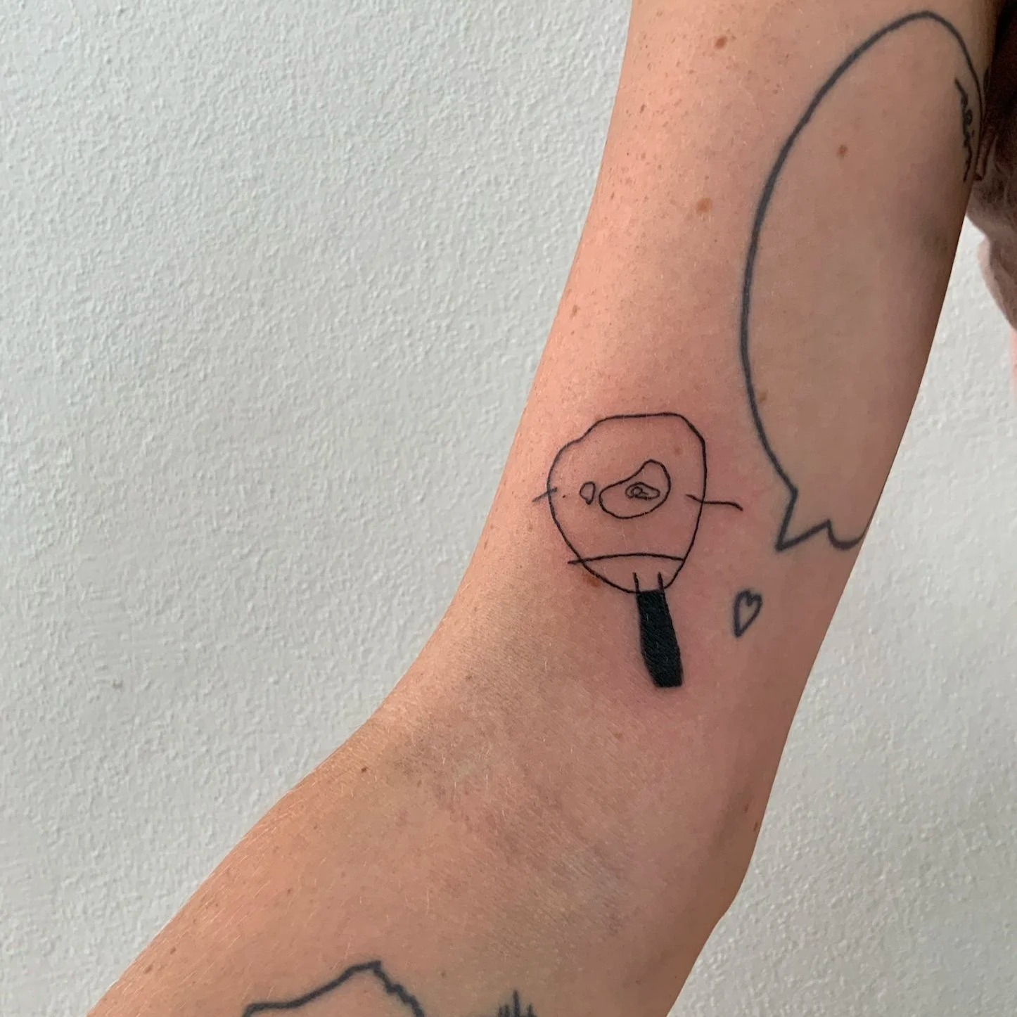 There are many reasons why parents choose to tattoo their children’s drawings. Some want to hold on to a moment that disappears almost as soon as it arrives — those early years when everything is drawn with pure instinct. No fear. No self-correction. No sense of what is “right” or “wrong.” Just marks made because the hand wanted to move. There’s a strange honesty in that kind of drawing, something raw and unfiltered that adults slowly lose along the way.