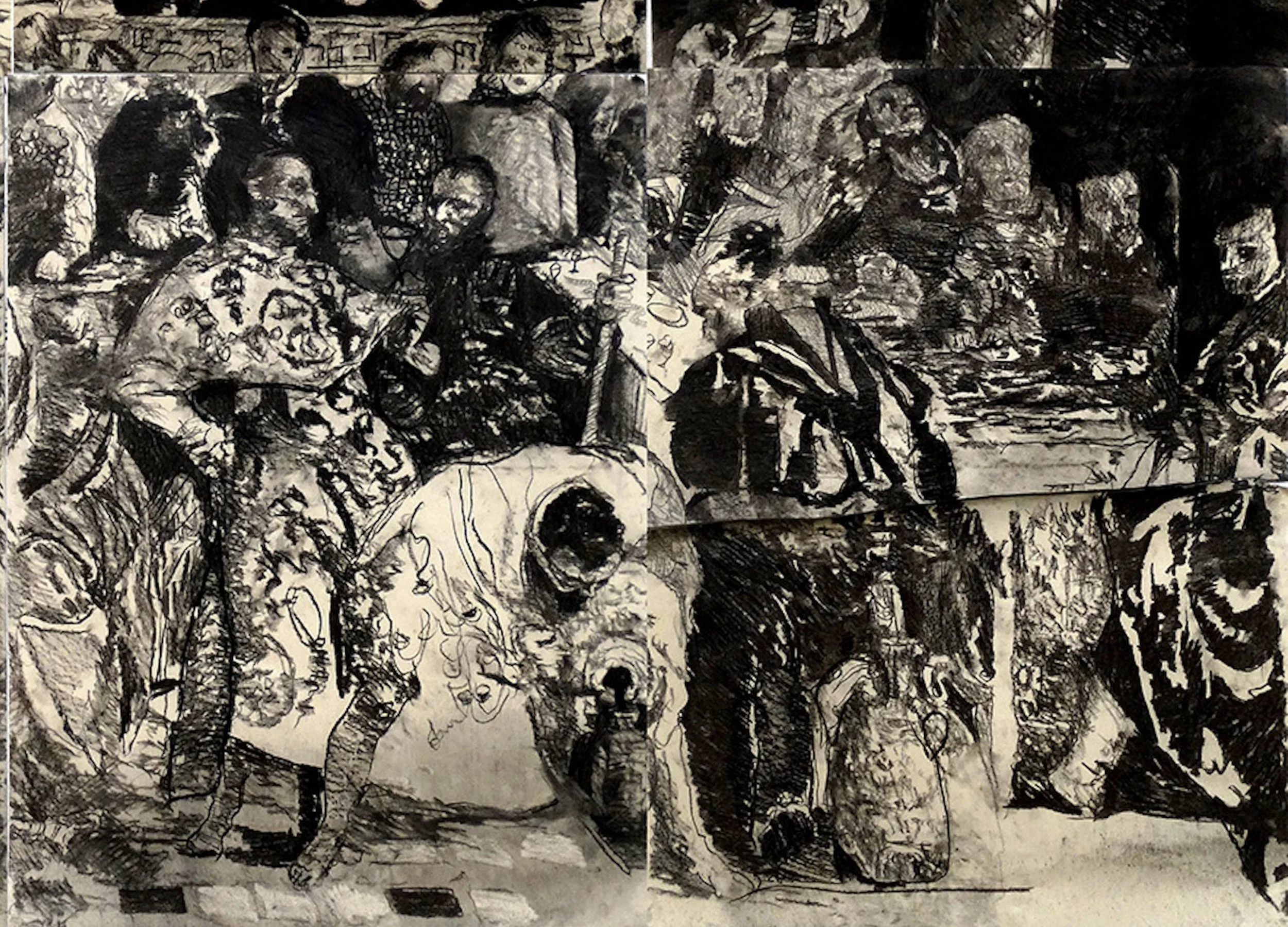 Charcoal on paper, 240 × 300 cm (composed of sixteen sheets)