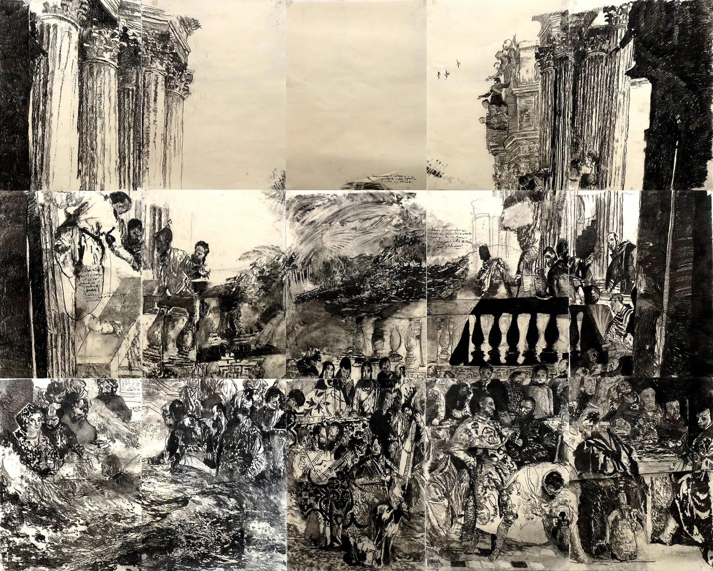 Charcoal on paper, 240 × 300 cm (assembled from sixteen sheets)